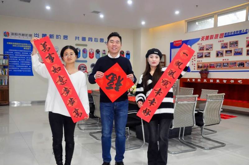 “感謝園區(qū)給我們送福氣,聞著墨香就感覺新年越來越近?!眻@區(qū)一位企業(yè)家說。13日下午開始,炎黃科技園工作人員帶著寫好的“?!弊趾痛郝?lián)陸續(xù)走訪入園企業(yè),將一張張喜氣洋洋的“福”字,一幅幅寓意吉祥的春聯(lián),送到企業(yè)負(fù)責(zé)人手中,讓大家提前感受到濃濃的年味。